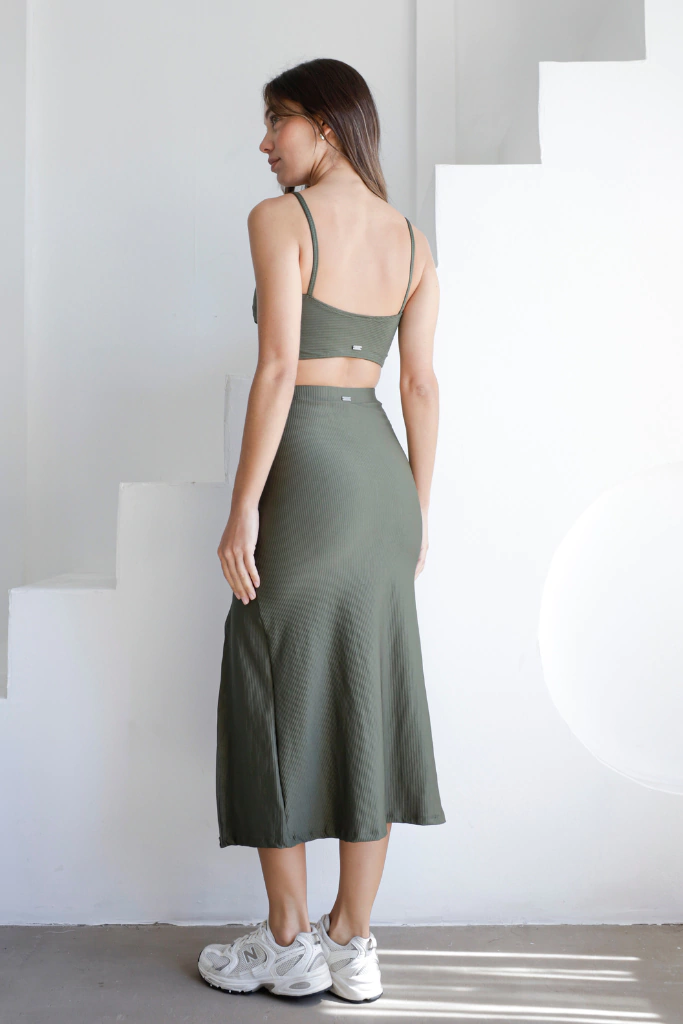 Falda en morley verde militar con tajo lateral (super sexy). Cintura con elástico.